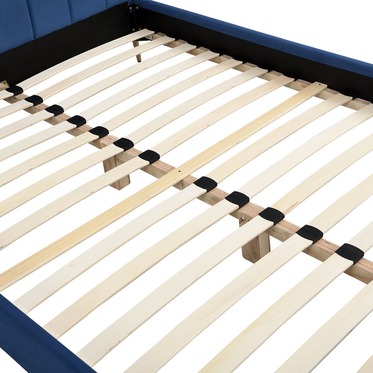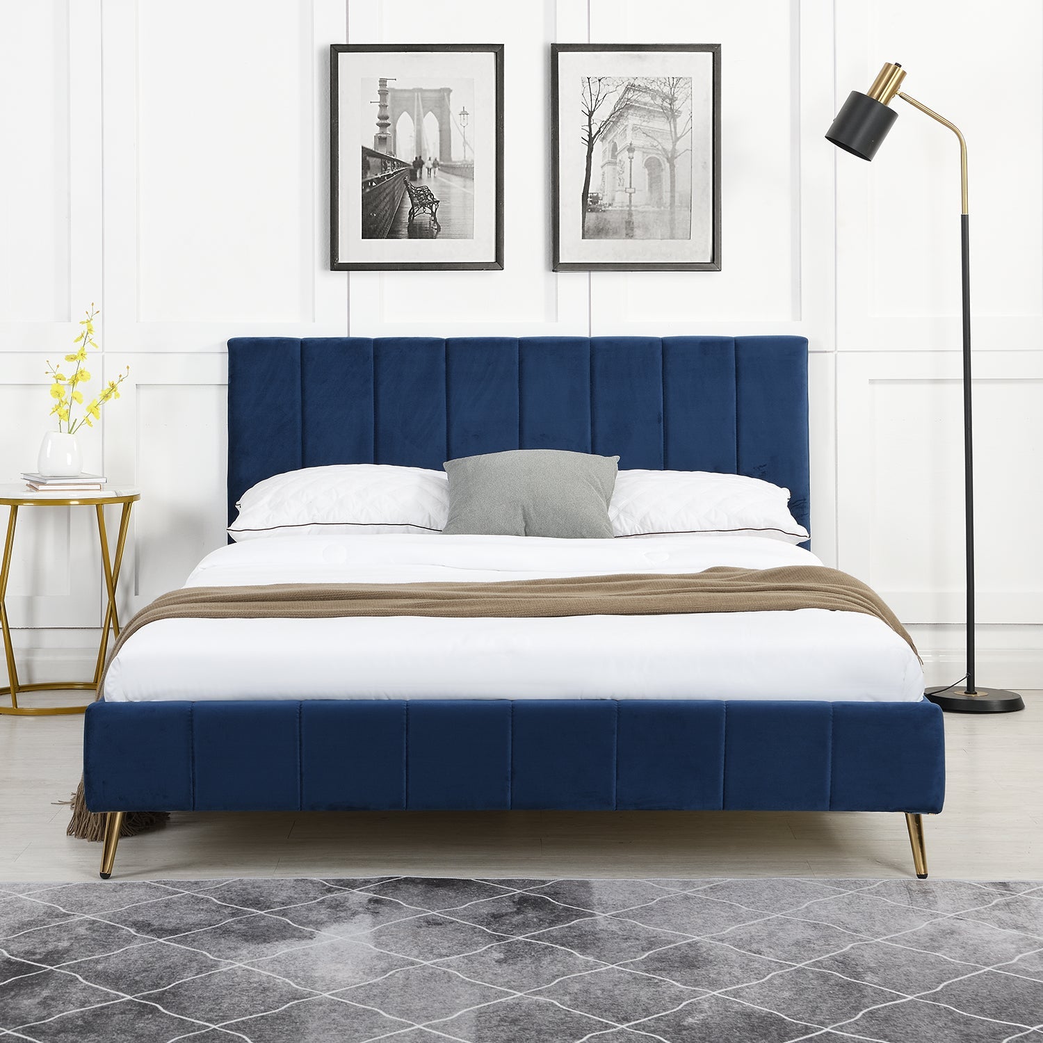 Sylvie Velvet Upholstered Bed Frame with Golden Chrome Legs, Navy Velvet